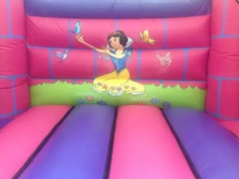 This 12 ft by 12 ft Pink Princess Bouncy Castle is a must for any little girls princess party in Dorset. This bouncy castle is suitable for most small gardens and is great for halls like Preston village hall in Weymouth with a low roof or loaders village hall near Bridport. This great pink princess bouncy castle has fantastic bright stunning hand painted artwork and is airbrushed in places and has a really good bounce to the bed. The little princess who your booking this pink bouncy castle for will be overjoyed to feast her eyes on this bespoke inflatable at her princess party. This castle is a bespoke bouncy castle that is a one of a kind and was made for Weymouth Bouncy Castle Hire in Dorset, this castle is unique to us. Great for birthday parties, christenings, princess parties and girlie get together's or part of a pink princess party package.