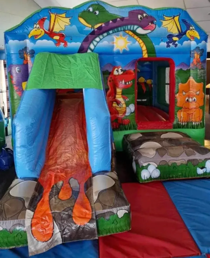 Unleash Your Child's Inner Paleontologist: Our bouncy castle takes your party guests on a journey back in time, where they can imagine themselves exploring the land of dinosaurs. From T-Rex to Triceratops, our inflatable dinosaur replicas will spark their imagination and create unforgettable memories.
