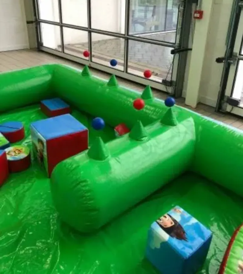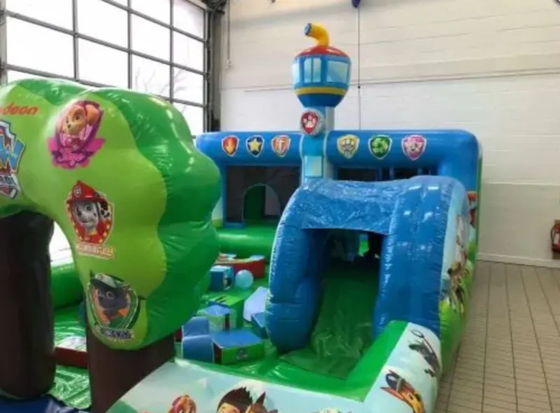 This fantastic Paw Patrol soft play activity center comprises of an enclosed bouncing area with slide and paw patrol ball pool area , in view is the fully enclosed Paw Patrol inflatable slide.