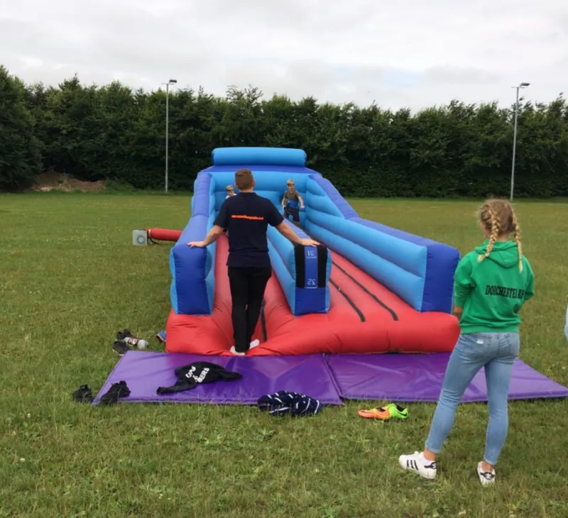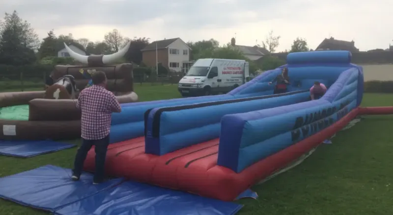 Balloons bouncy castle slide combo, ball pool, didi car race track and cars party package for hire in Weymouth, Dorchester, Bridport, Blandford, Poole, Wareham, Yeovil and most of Dorset