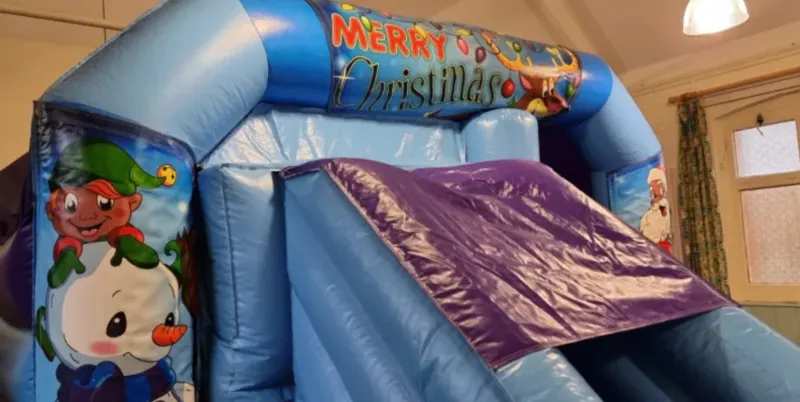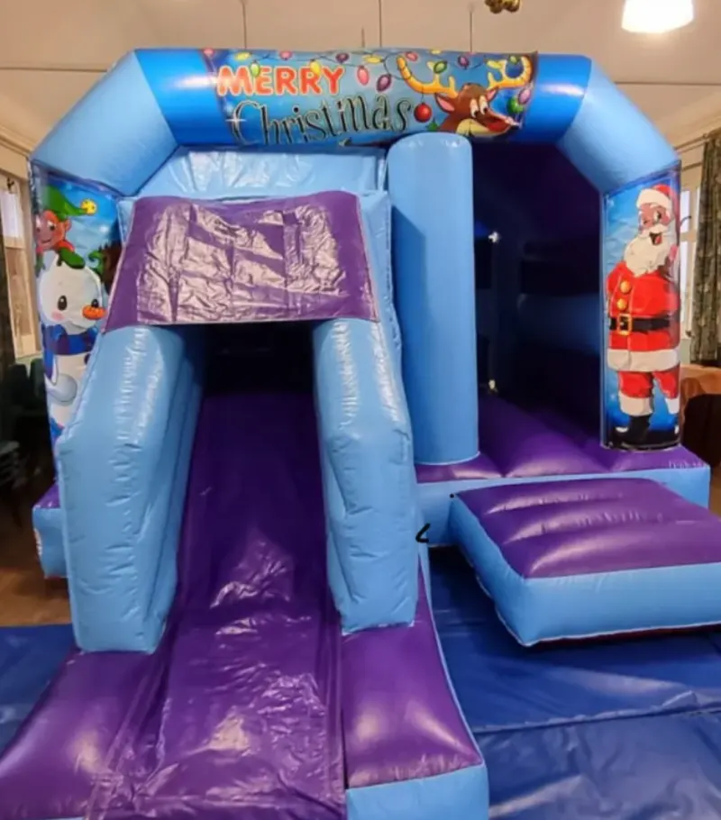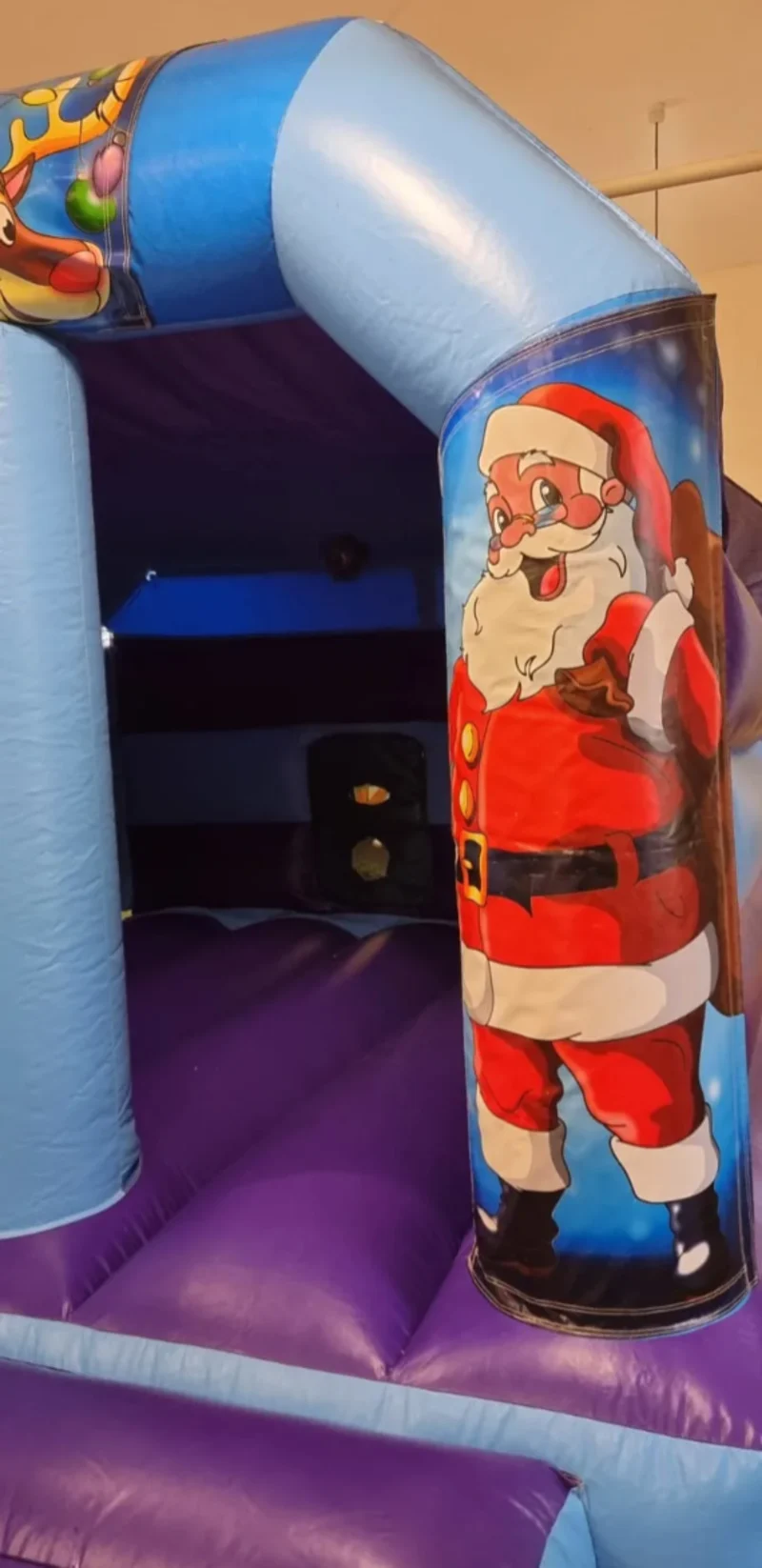 What better way to celebrate Christmas than with our fantastic Christmas themed disco bouncy castle slide combo? Let your little elf's bounce , slide and boogie on this wonderful fun packed inflatable and with Father Christmas watching them they are sure to behave or they will be on the naughty list. Supplied with safety mats , speaker and lights as standard