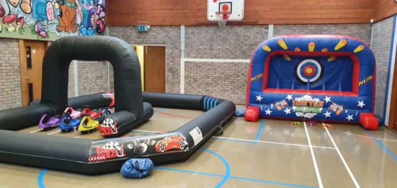 Didi car racetrack and nerf shoot out game for hire in Weymouth and surrounding areas of Dorset .