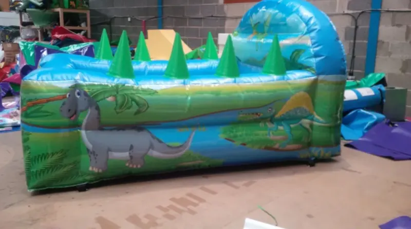 Our brand new dinosaur air juggler ball pool or ball pit , is absolutely stunning and has many dinosaurs digitally printed on it to give it a great dinosaur landscape look, great for childrens dinosaur parties on the jurassic coast.