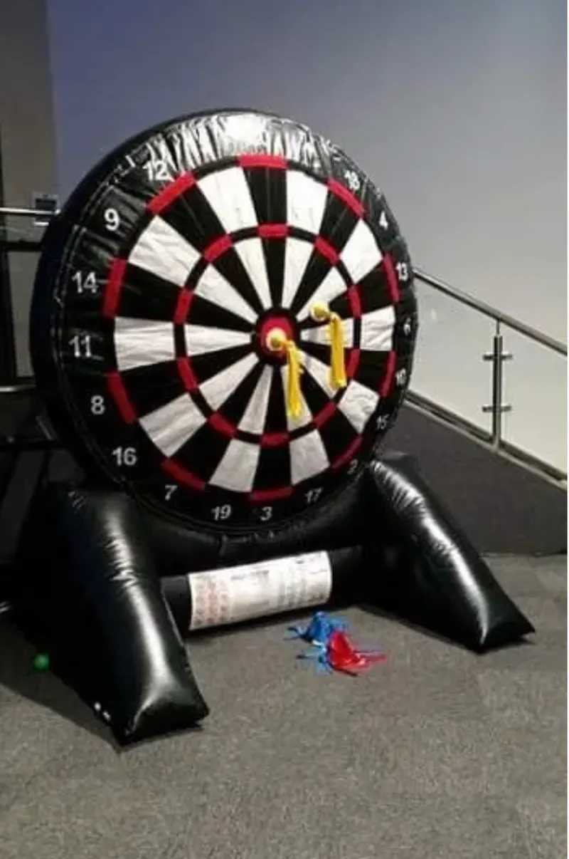 Our awesome giant dartboard is absolutely fantastic addition to any party, funday, wedding or any other fun event. There is no risk of stabbing anyone with sharp darts with this garden game, all the darts are Velcro and can be used by children of any age includind adults,it's an absolute must four weddings and garden parties can be hired inside or out