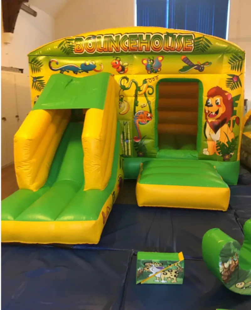 Jungle Theme Bouncy Castle Slide Combo, Jungle Soft Play & Jungle Themed Ball Pool For Hire In Weymouth, Dorchester, Bridport, Blandford, Sherborne, Poole & surrounding areas of Dorset.