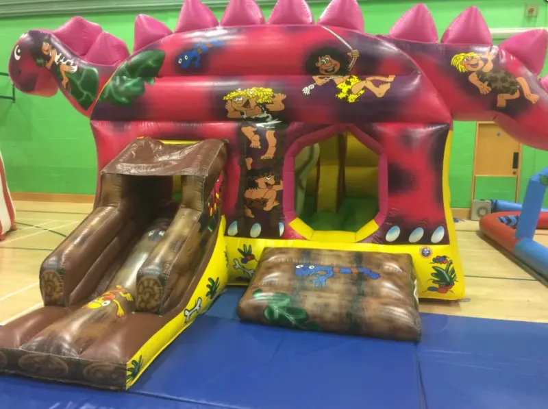 Great Dinosaur bouncy castle slide combo with dinosaur soft play shapes, Jurassic Park car and fantastic Dinosaur ball pit is ideal for younger childrens 1st, 2nd, 3rd,4th and 5th birthday parties.