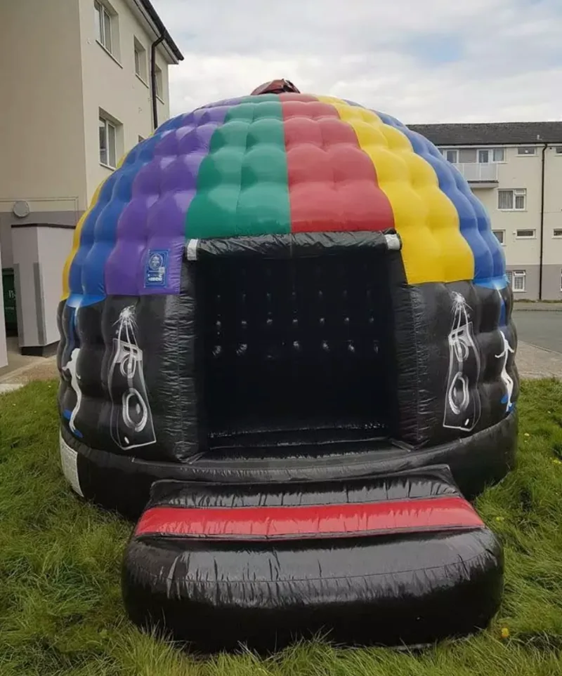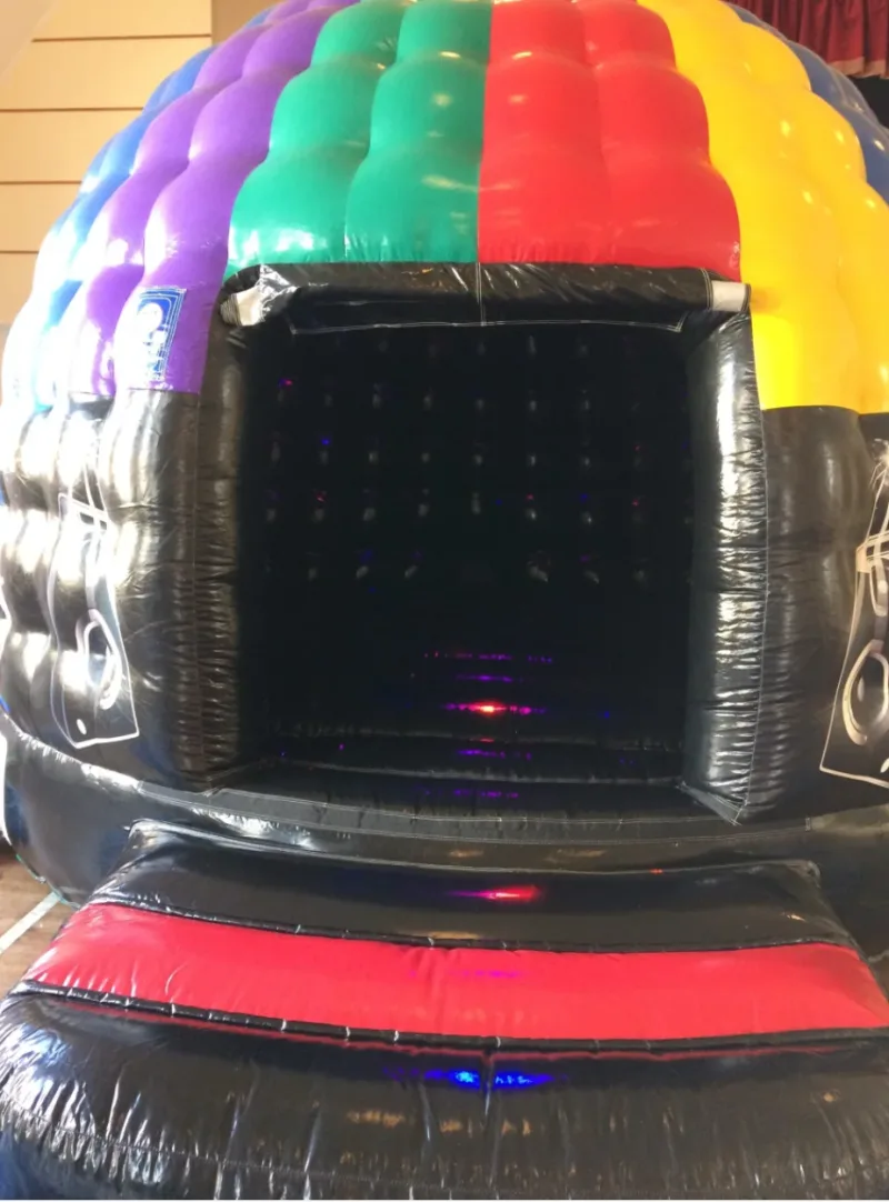 Disco dome party inflatable, combined with our matching didi car racetrack to give your children a unique disco racing party that will be the envy of all, at your childs party. Enter the disco dome bouncer, with its flashing disco lights for the disco party and bounce on the inflatable bouncy castle bed, its a disco bouncy castle all on its own. Then grab a didi racing car and race a around the racing didi car racetrack until the gas runs out, this is a truly amazing children's birthday party package.