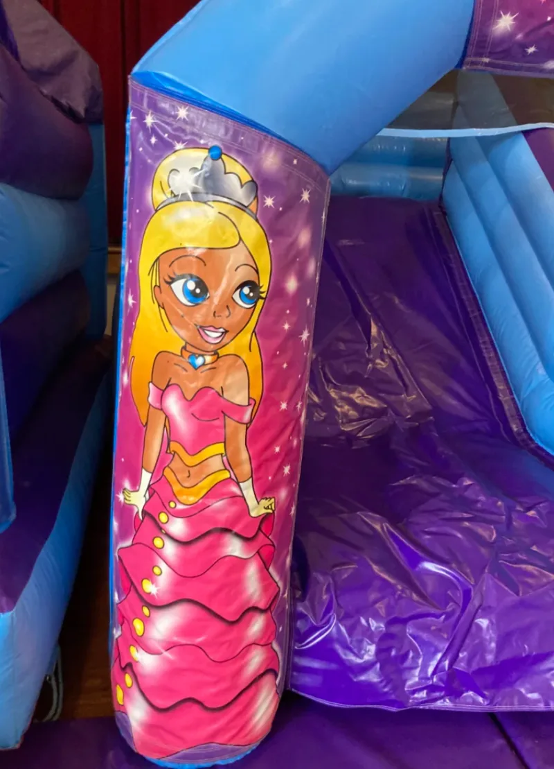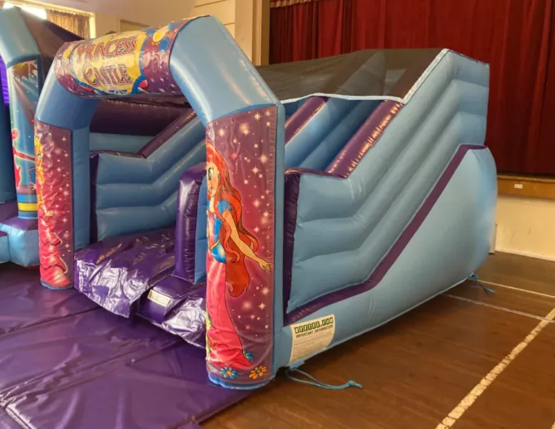 Princess party slide is a stunning slide it's adorned with pretty princess and stunning printed artwork. Fantastic for princess parties and can be hired as a stand alone party piece or as part of a Princess Party Packages or with any other Bouncy Castles or even a set of Didi Cars.