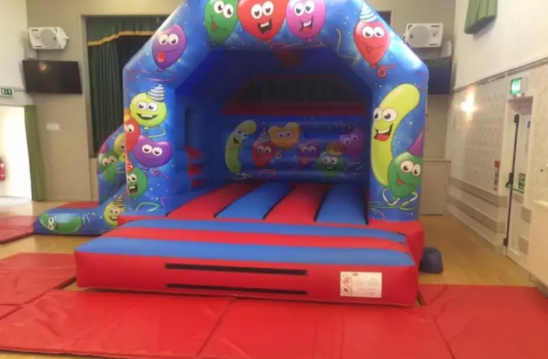 This great super deluxe smiley balloons bouncy castle not only has great artwork all over it, it also boasts a small inflatable slide on the side and benefits from having a shower cover attached. This bouncy castle is also equipped with a large bouncing area to allow more children to use it at Kids parties in Weymouth , Dorchester and the Dorset area. This DELUXE bouncy castle provides extra safety with high walls, netted back wall and roof cover on castle and slide, brand new October 15. The size of this inflatable is length 15ft, width 19ft and height 13ft. This inflatable is suitable for entertaining children from the age of 2 to 12 years. The bouncy castle is regularly inspected by an rpii registered inspector and all electrics are pat tested regularly, safety mats that measure 6ft by 4 ft are placed around all open sides. We deliver all our bouncy castles, soft play equipment to Blandford, Sherborne, Dorchester, Poole, Wareham, Swanage, Bridport and all surrounding areas of Dorset.