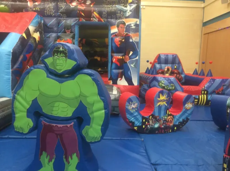The superhero theme dose not end with the soft play sets, we have the largest collection of superhero themed bouncy castles and inflatable obstacle courses in the South West. Why not add one them to your soft play package, just look at our full range of Superhero Party Packages your be amazed.