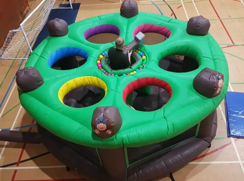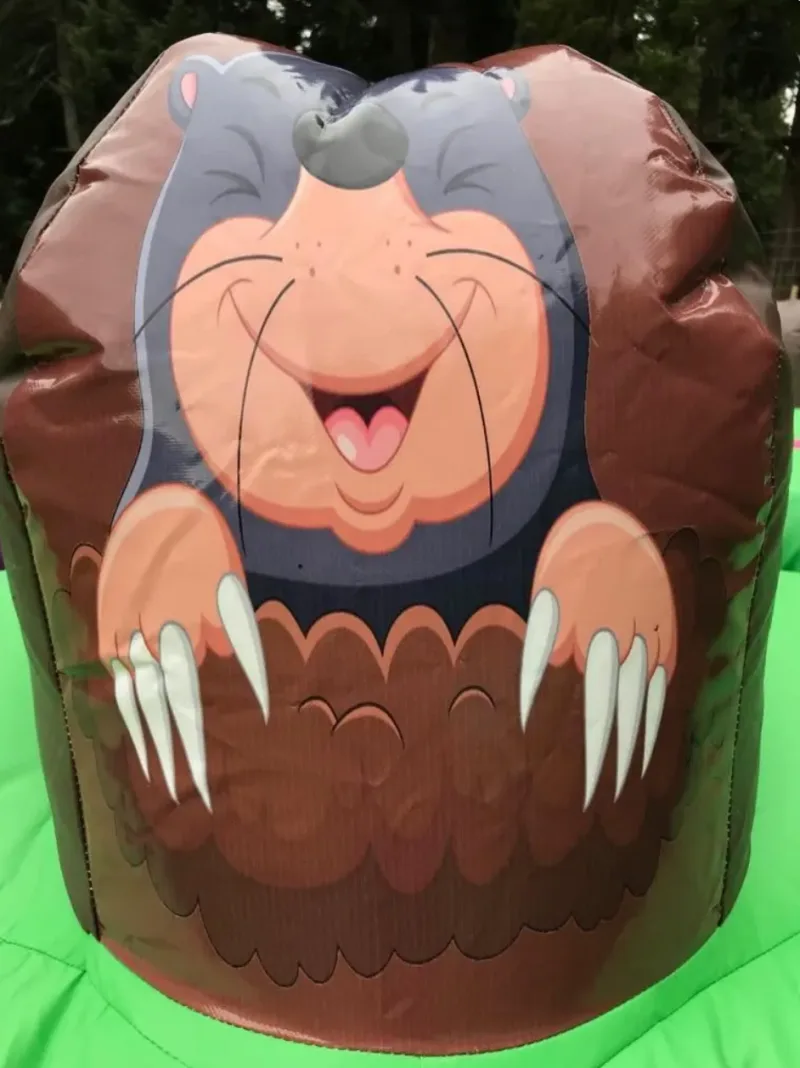 The aim of the game is clear the moles need to collect as many of the gardener/bashers balls as possible, but look out moles every time you poke your head out of your mole hole , the basher will be waiting to whack a mole with the inflatable mole basher. It's Absolutely hilarious fun for contestants and spectators alike I must have inflatable game for any party or event in the Weymouth, Dorchester, Bournemouth, Blandford, Salisbury, Exeter, Dorset Devon, Wiltshire, Hampshire and the south-west of England.